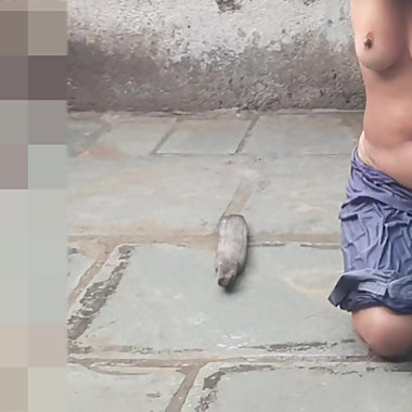 "Desi sister-in-law is taking a bath in an open bathroom near the road on the edge of the forest on the farm"