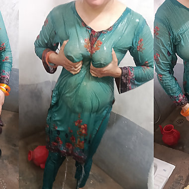 "The desi sister-in-law of the village opened the drenched saree and took a bath in the open bathroom."