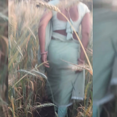"Desi daughter-in-law is walking in the wheat field in front of her father-in-law with her big ass and fingering her pussy."