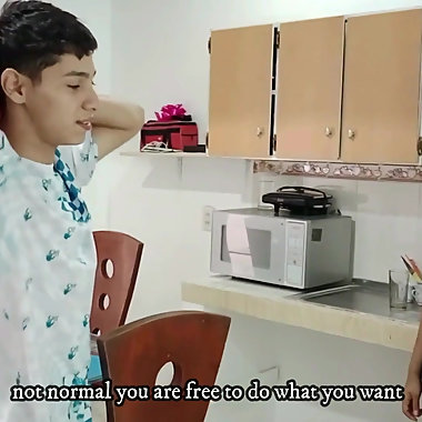 "Take off your pants, my stepmom's slut tells me before going downstairs to suck my cock - Porno en Español"